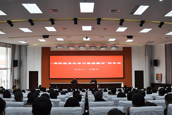 1月20日下午,学院在滨海校区清泽楼报告厅举行报告会,邀请教育部(国家)教育发展研究中心研究员、高等教育研究室主任、博士生导师马陆亭教授作题为“高职教育改革与章程建设”的报告。更多 -