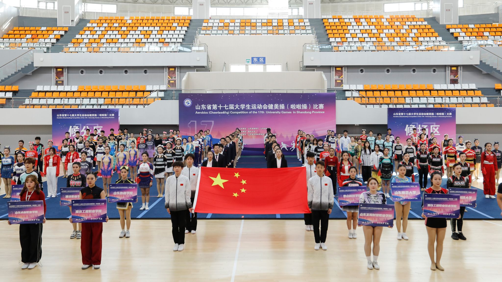 山东省第十七届大学生运动会健美操(啦啦操)比赛在MG冰球突破官网滨海校区顺利开赛