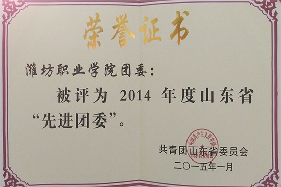 学院团委获山东省先进团委和潍坊市红旗团委称号