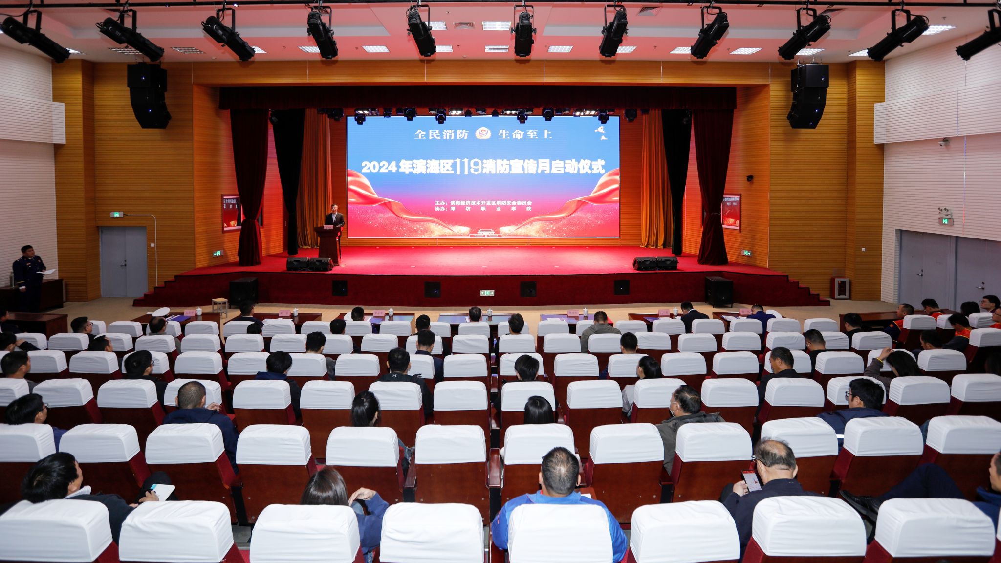 11月8日上午,2024年滨海区“119消防宣传月”活动启动仪式在MG冰球突破官网滨海校区举行。区党工委副书记、管委会副主任张振城,市消防救援支队党委委员、副支队长吴永康,区应急管理局党委书记、局长王金,区党群工作部副部长马东、区消防救援大队教导员王德帅、大队长潘元,学院党委委员、副院长任培华出席活动。滨海区消安委成员单位、各街道园区分管负责同志及全区消防安全重点单位等260人参加启动仪式。任培华致辞,介绍了学院近年来发展建设取得的成绩和“...更多 -