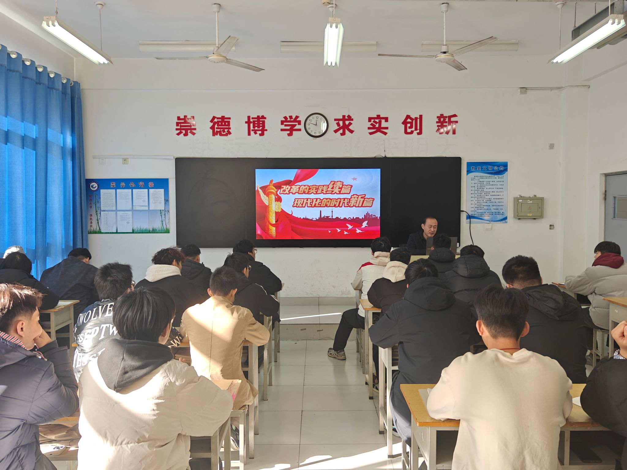 为深入学习贯彻落实党的二十届三中全会精神,引导学生坚定理想信念,争做时代新人,11月26日,学院党委委员、副院长赵宏坤到汽车工程学院为学生讲授“改革的时代续篇 现代化的时代新篇”专题思政课,汽车工程学院主要学生干部以及辅导员参加活动。本次思政课包含“把握历史主动 改革波澜壮阔”“锚定关键领域 擘画改革蓝图”“遵循改革规律 保持战略定力”“引领职教潮流 勇担时代重任”四个方面。赵宏坤结合党的二十届三中全会对全面深化改革的总体部署,...更多 -