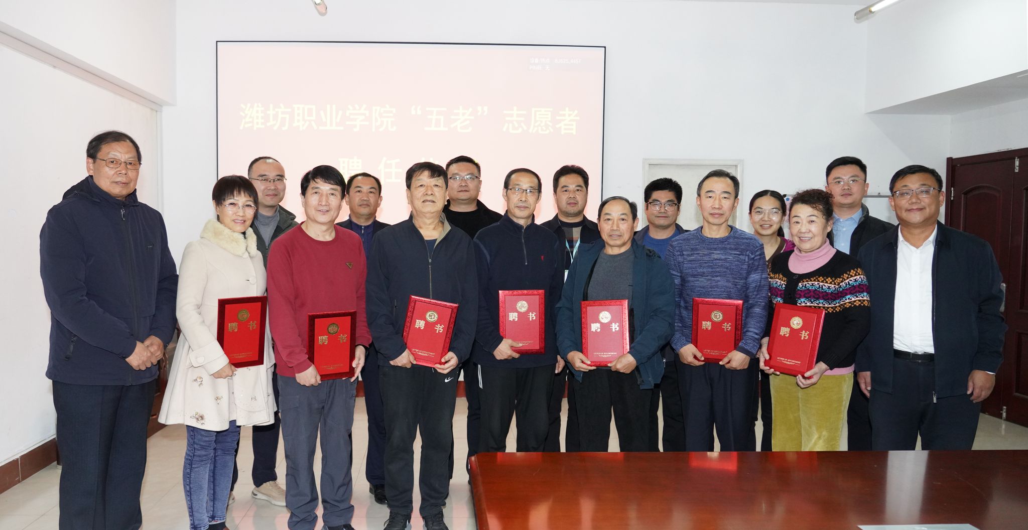 为做好新时代关心下一代工作,充分发挥“五老”的优势和作用,11月26日下午,学院在奎文校区11号楼三楼会议室举行“五老”志愿者聘任仪式。学院党委副书记韩瑞东,离退休党总支书记刘贞富,原党委委员、副院长赵君堂等受聘“五老”志愿者,相关二级学院负责人参加了聘任仪式,仪式由党委委员、组织人事处(离退休工作处)处长于涛主持。聘任仪式上,主持人首先介绍了“五老”志愿者的个人简历、专业特长、服务意向等,志愿者们围绕各自专业特长,...更多 -