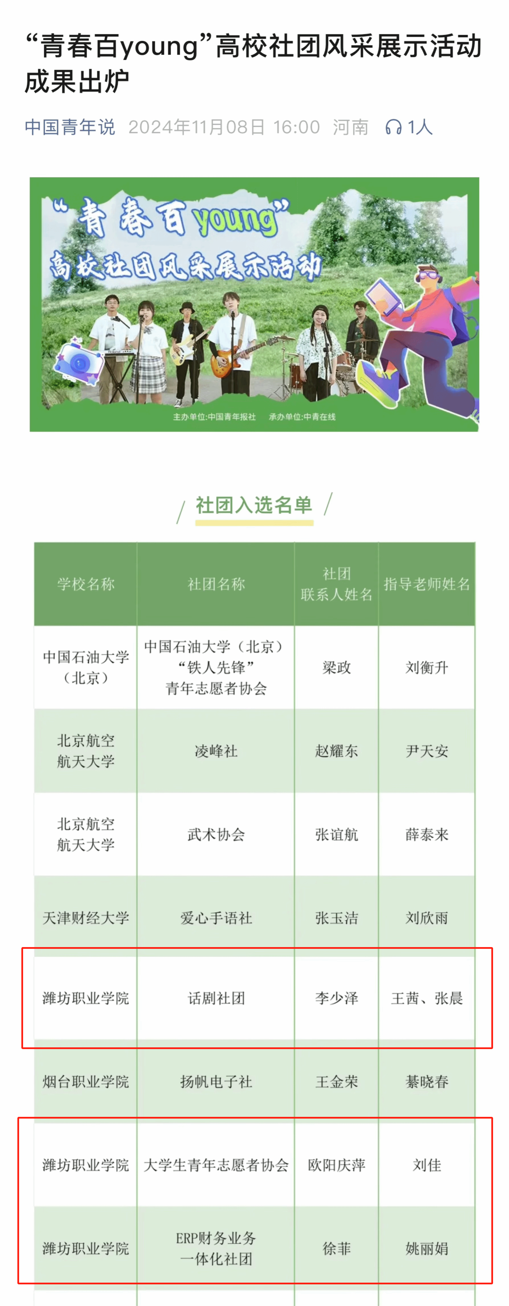 近日,由中国青年报社主办、中青在线承办的全国“青春百young”高校社团风采展示活动成绩公布,学院3个社团成功入选优秀社团。本次活动旨在呈现大学生多元的校园文化、展现当代青年昂扬的青春风貌,以青春视角展示高校学生社团活动开展实际和事迹成果。自9月活动启动以来,学院团委积极响应,鼓励各学生社团凝练社团特色、挖掘工作亮点、总结育人成效,按照活动要求提交作品。经过校内推荐、中国青年报宣传展示、专家评审团评审等环节,...更多
