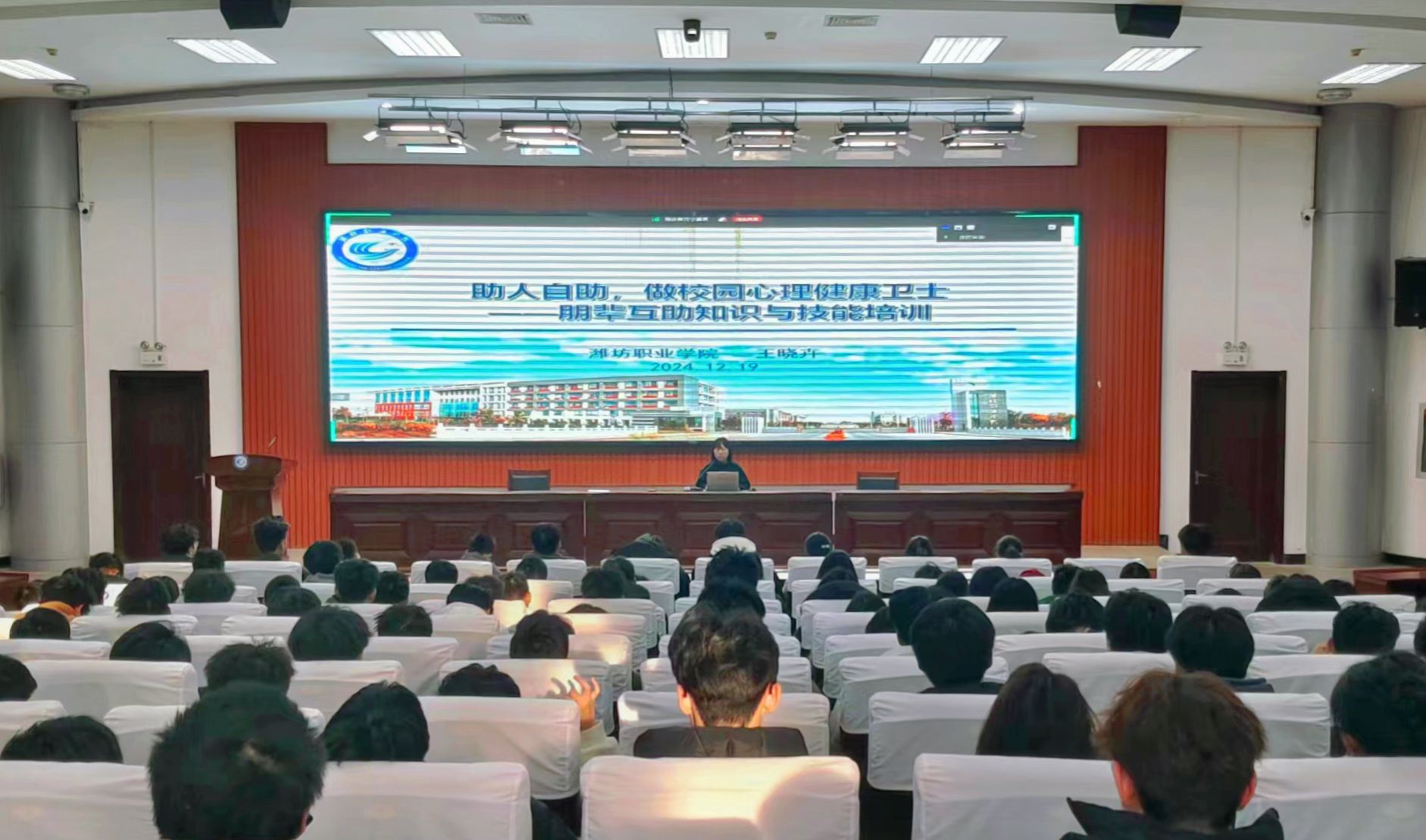 为进一步做好学院学生心理健康教育工作,有效防范化解学生心理危机事件,更好地提升心理朋辈互助队伍的专业化建设,12月19日下午,学院在滨海校区清泽楼报告厅组织开展了第五期心理朋辈互助队伍专题培训,各二级学院班级心理委员参加培训。培训由团委学生工作处心理健康中心专职心理教师、国家三级心理咨询师王晓卉主讲。讲座中,王老师从了解朋辈辅导、识别心理危机、做好安抚守护以及如何安慰心情低落同学等四大方面为心理委员们提供了学生心理问题的解决思路和技巧。...更多 -