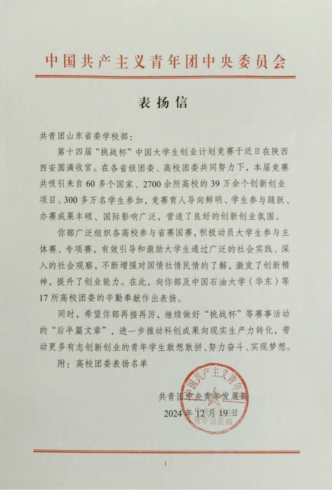 近日,学院收到共青团中央青年发展部发来的表扬信,对MG冰球突破官网第十四届“挑战杯”中国大学生创业计划竞赛中取得的优异成绩进行表扬。“挑战杯”系列竞赛被誉为中国大学生科技创新创业的“奥林匹克”盛会,在中国高等教育学会所发布的《全国普通高校大学生竞赛排行榜》中位列前三,是教育部官方认可的最具含金量与参赛价值的创新创业赛事之一。习近平总书记多次强调要加快建设科技强国,更加重视青年人才培养,让更多的青少年心怀科学梦想、...更多 -