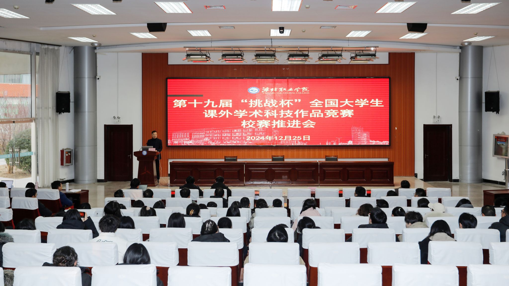为进一步激发学生的创新思维和实践能力,培养学生的科学精神和科学态度,为建设科技强国贡献青春力量,12月25日,第十九届“挑战杯”全国大学生课外学术科技作品竞赛校赛推进会在滨海校区清泽楼报告厅举行。学院党委委员、副院长任培华,各二级学院党总支书记、分管学生副院长、团总支书记、双创工作负责老师,团委学生工作处负责同志,指导教师、辅导员代表等100余人参加会议。任培华作动员讲话。他对学院近年来在“挑战杯”竞赛中取得的成绩给予充分肯定,...更多 -
