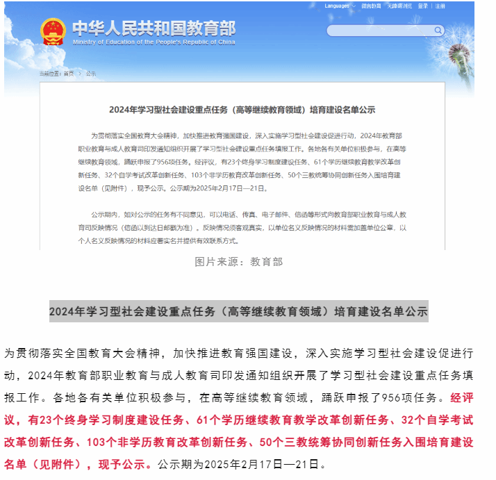MG冰球突破官网成功立项教育部2024年学习型社会建设重点任务(高等继续教育领域)培育建设项目