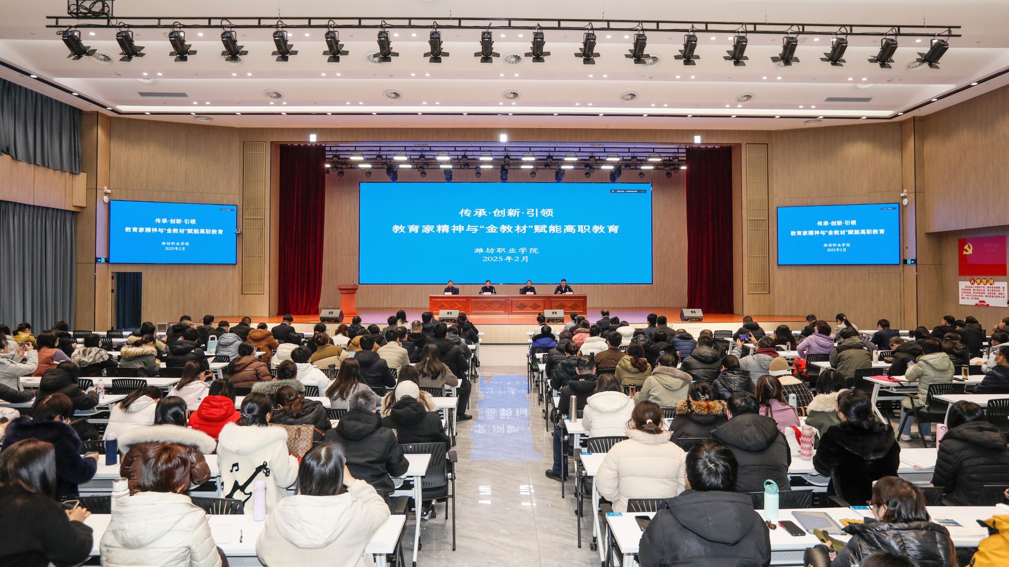 为进一步弘扬践行教育家精神,全方位建设新时代高素质专业化教师队伍,培养新时代职教“金师”,2月19日上午,学院举办“传承·创新·引领:教育家精神与‘金教材’赋能高职教育”主题宣讲活动。学院党政领导班子成员出席,1000余名教职工分别在滨海、奎文校区三个会场参加活动。活动由学院党委委员、组织人事处(离退休工作处)处长于涛主持。宣讲伊始,学院党委副书记贺志强致辞。他向全体教职工致以新春的问候和祝福,肯定了过去一年学院在教育教学、...更多 -