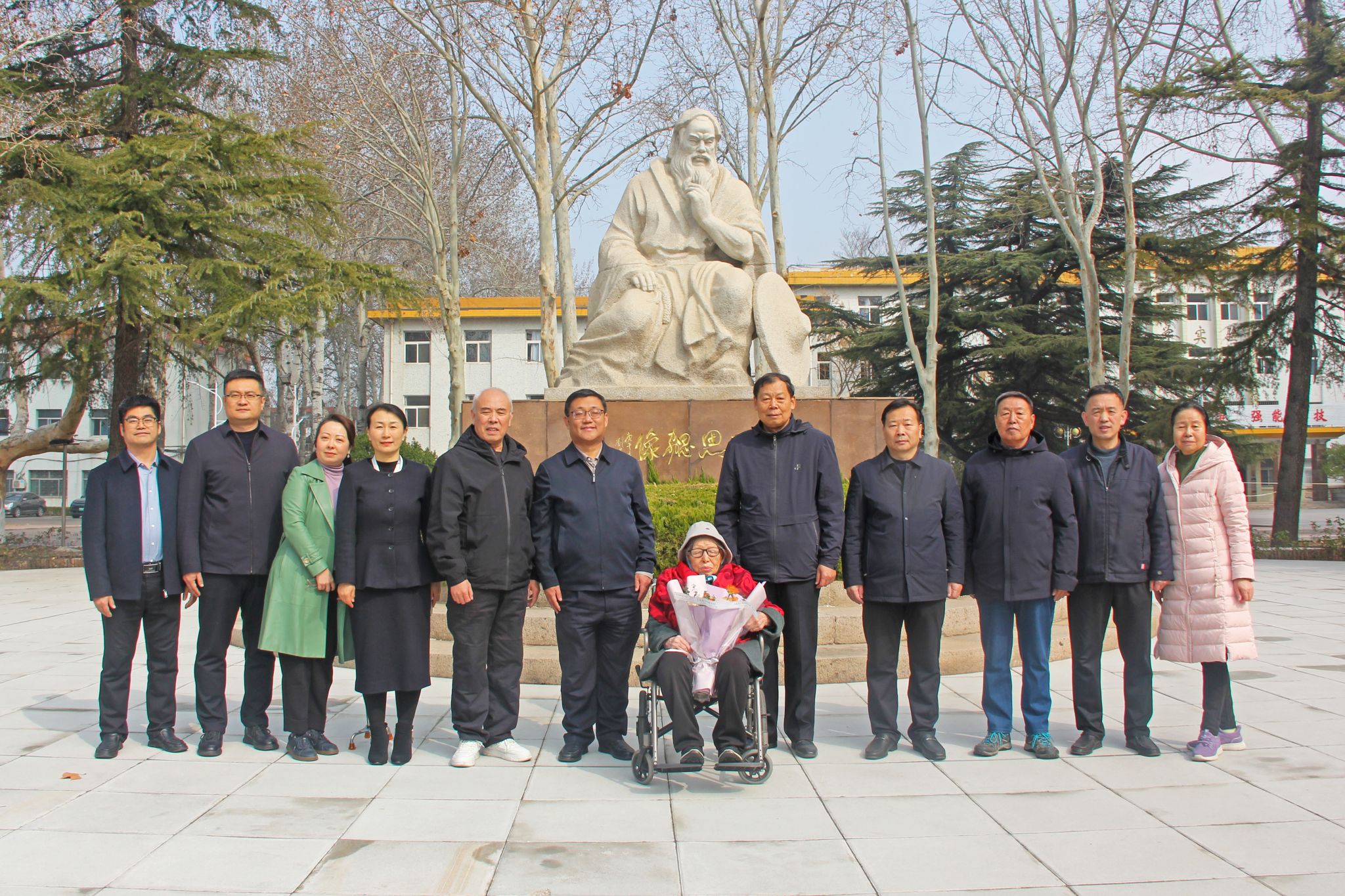 3月11日,春意盎然,学院迎来了一位特殊的客人——百岁离休干部邹立新,学院党委副书记韩瑞东、贺志强,离退休党总支书记刘贞富,党委委员、办公室(统战部)主任(部长)刘志艳,党委委员、组织人事处(离退休工作处)处长于涛,离退休第二党支部书记戴维一,图书馆馆长等与她进行了座谈,并陪同参观了奎文校区校园。上午9:30,邹立新老师在家属的陪同下来到了学院,学院领导及相关部门的老师们到6号楼门前迎接,师生代表献花,欢迎邹老师回家,...更多 -