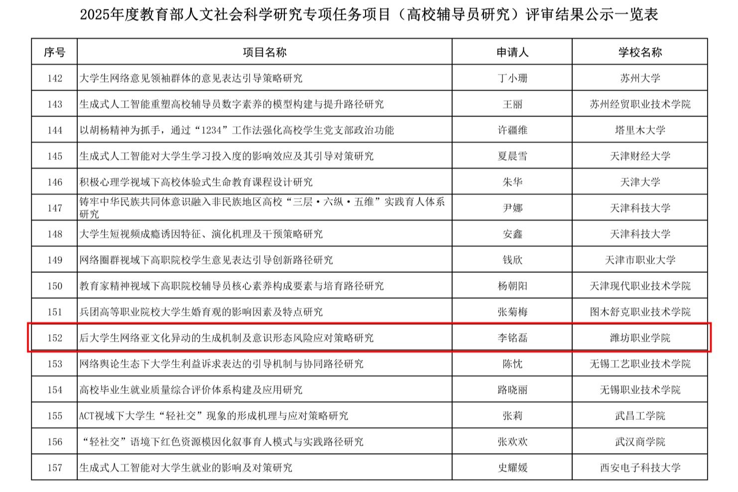 近日,教育部社会科学司对2025年度教育部人文社会科学研究项目和高校思想政治理论课教师研究专项项目的评审结果进行了公示,学院首次在该项目上获得2项拟立项,标志着学院在哲学社会科学研究领域取得重要突破。教育部人文社会科学研究项目是我国高校哲学社会科学领域具有高度权威性和重要影响力的科研项目,其立项情况不仅是衡量高校人文社科研究实力与创新能力的关键指标,也是推动高校科研工作服务国家战略需求、回应社会现实关切的重要载体。...更多