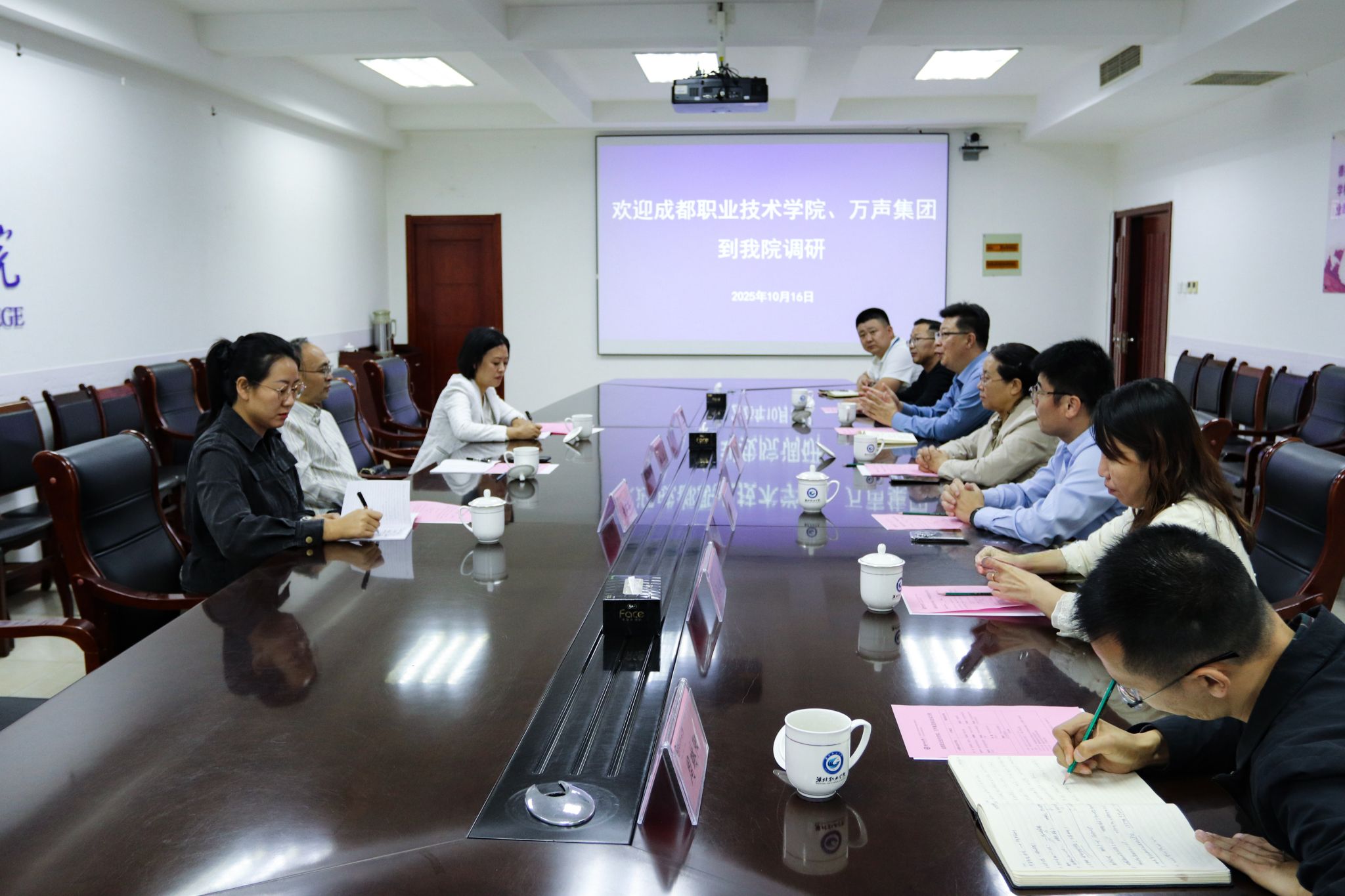 10月16日下午,成都职业技术学院党委委员、副校长任忠一行3人来MG冰球突破官网考察,万声集团副总经理邱运乾陪同考察。学院党委委员高凌云陪同参观交流,文化创意学院主要负责同志及相关人员参与交流。座谈会前,任忠一行参观了潍坊市现代服务业产业学院实训基地,实地查看基地的设施配置、教学运行及校企合作实训开展情况,并对基地的建设水平和实践教学成效给予高度评价。座谈会上,考察团观看了MG冰球突破官网宣传片,对学院的办学历史、学科建设、...更多 -