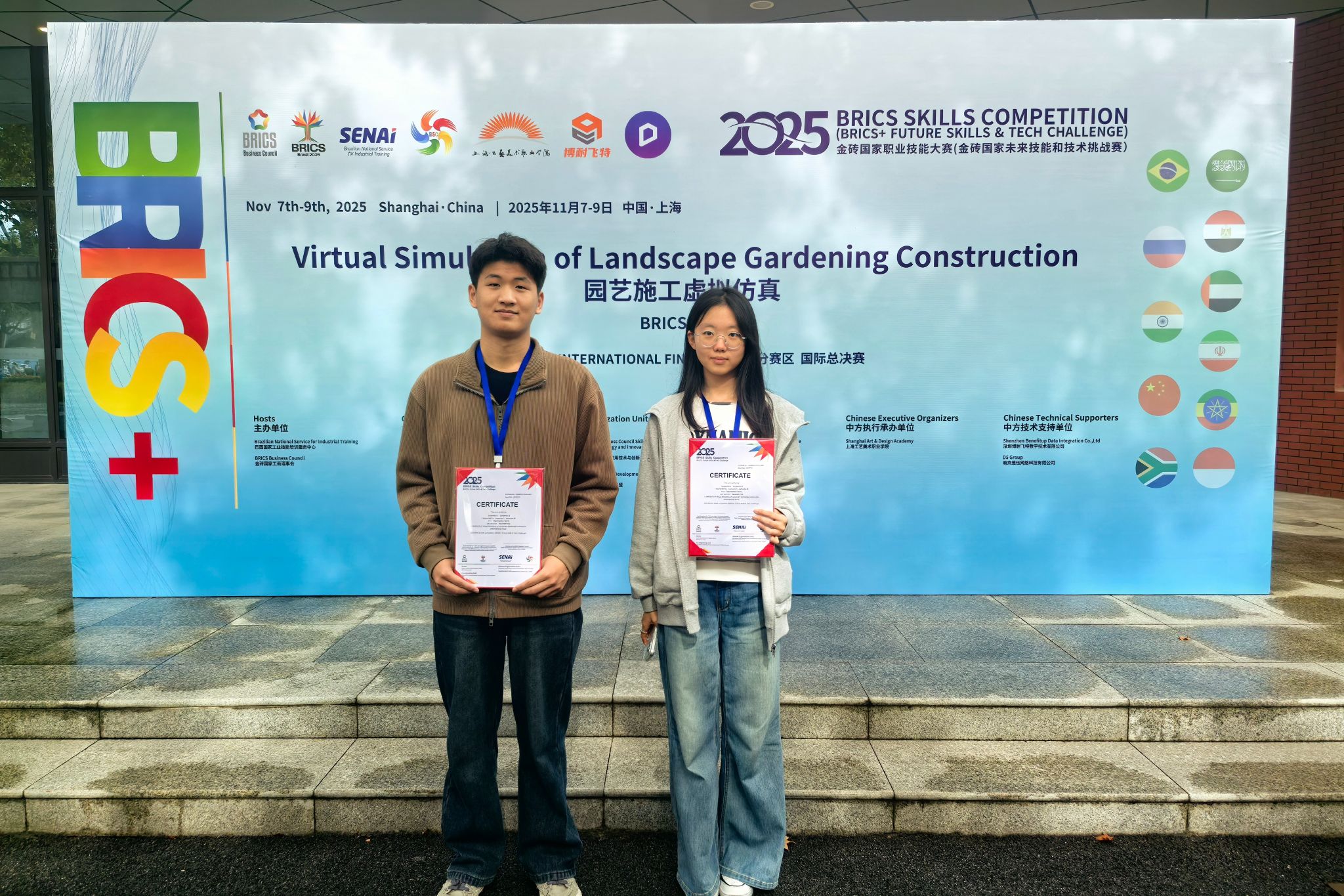 近日,2025 金砖国家职业技能大赛园艺施工虚拟仿真赛项国际总决赛在上海工艺美术职业学院圆满落幕。MG冰球突破官网农林科技学院王士通、张一诺组成的参赛队,凭借扎实的专业功底、出色的实操能力和默契的团队协作,从众多参赛队伍中脱颖而出,荣获大赛一等奖,指导老师高洁、管虹获评 “国际优秀指导专家”。本次大赛由巴西国家工业技能培训服务中心 SENAI、金砖国家工商理事会联合主办,聚焦数字经济、新技术等重点领域,旨在搭建金砖 + 国家职业教育交流平台,...更多 -