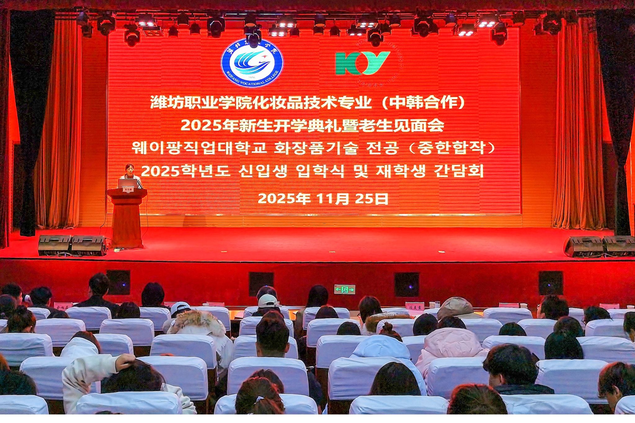 11月25日下午,化学工程学院化妆品技术(中韩合作)专业2025级新生开学典礼暨老生见面会在滨海校区图书馆报告厅举行。韩国建阳大学校长金容夏一行5人参加见面会,学院副院长陈美霞陪同,国际交流与合作处骨干教师、化学工程学院在校生及班主任共180余人齐聚一堂,共同见证这一重要时刻。活动由化学工程学院教学负责同志主持。金容夏校长在欢迎辞中指出,建阳大学以“培养具有真正人性的创意型人才”和“学生至上”为办学核心理念,与中韩职业教育培养高素质技能人才目标契合。...更多 -
