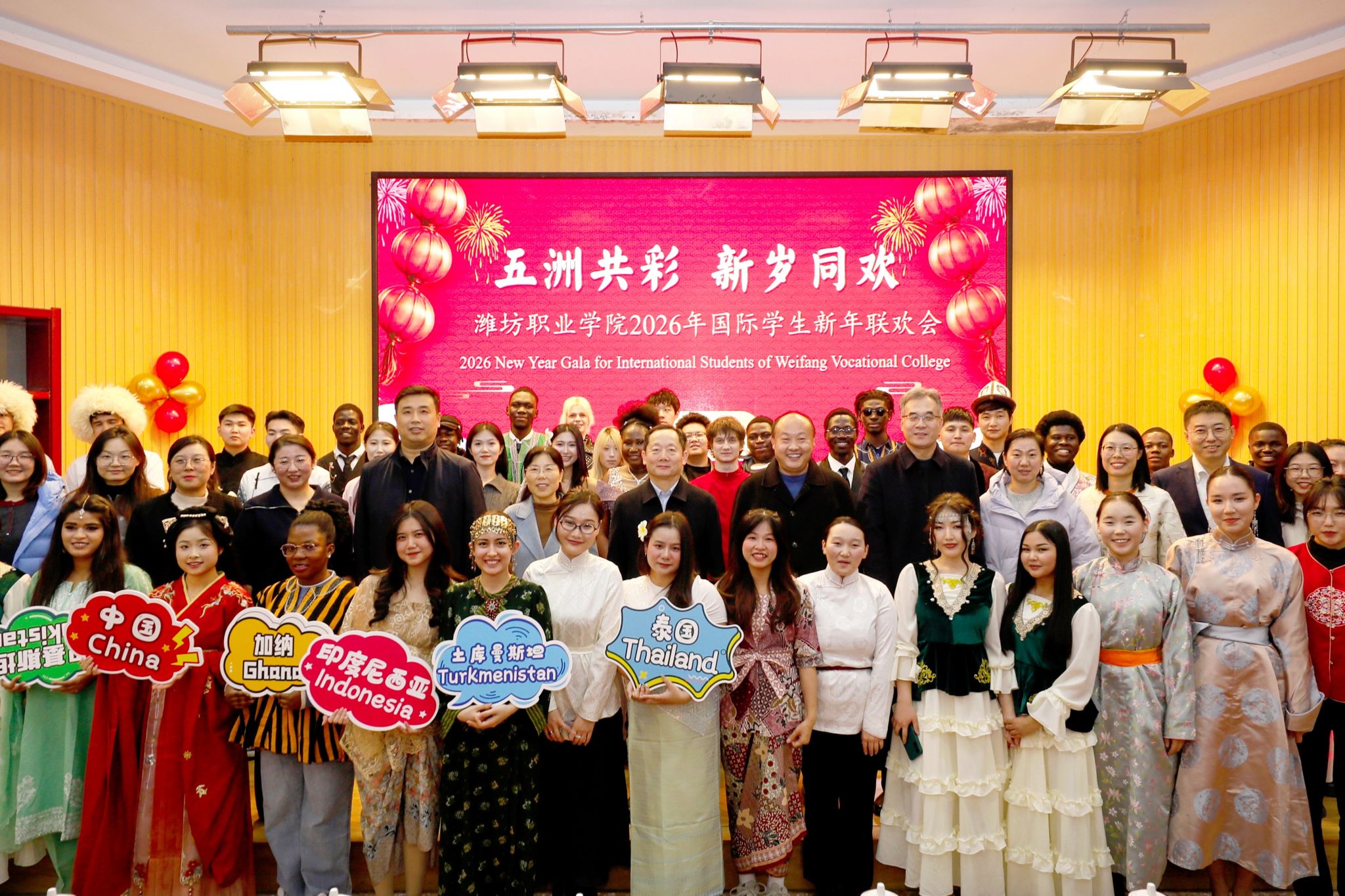 欢歌笑语辞旧岁,流光溢彩迎新年。12月30日下午,学院在奎文校区6号楼报告厅举办“五洲共彩 新岁同欢”2026年国际学生新年联欢会。学院党委书记王浩、副院长陈美霞出席,安全保卫处、机电工程学院、学生工作处相关部门负责同志参加活动,来自加纳、吉尔吉斯斯坦、俄罗斯、泰国等国家的80多名国际学生与国际教育学院全体教师欢聚一堂,共同迎接新年的到来。晚会以舞蹈《中华全家福》活力开场,吉祥的寓意与活泼的舞姿瞬间点燃全场。整场演出犹如一场微型的“...更多 -