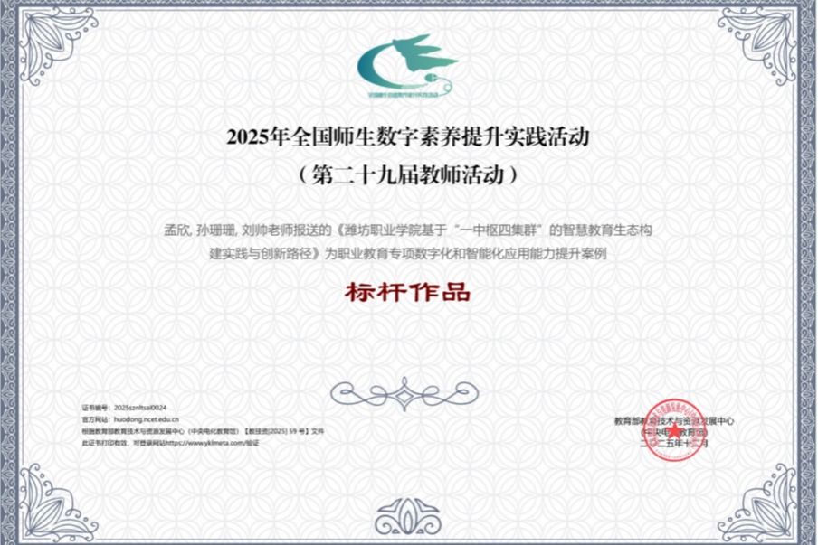 近日,教育部教育技术与资源发展中心(中央电化教育馆)公布了2025年全国师生数字素养提升实践活动-职业教育专项数字化和智能化应用能力提升案例评选结果。全国共评选出标杆作品39项,MG冰球突破官网报送的案例《MG冰球突破官网基于“一中枢四集群”的智慧教育生态构建实践与创新路径》成功入选。该案例系统阐述了MG冰球突破官网以构建数字生态为突破口,全面推进“一中枢四集群”智慧教育体系建设,通过打造“技术赋能-场景重构-数据驱动-机制保障”四维一体改革模型,...更多 -