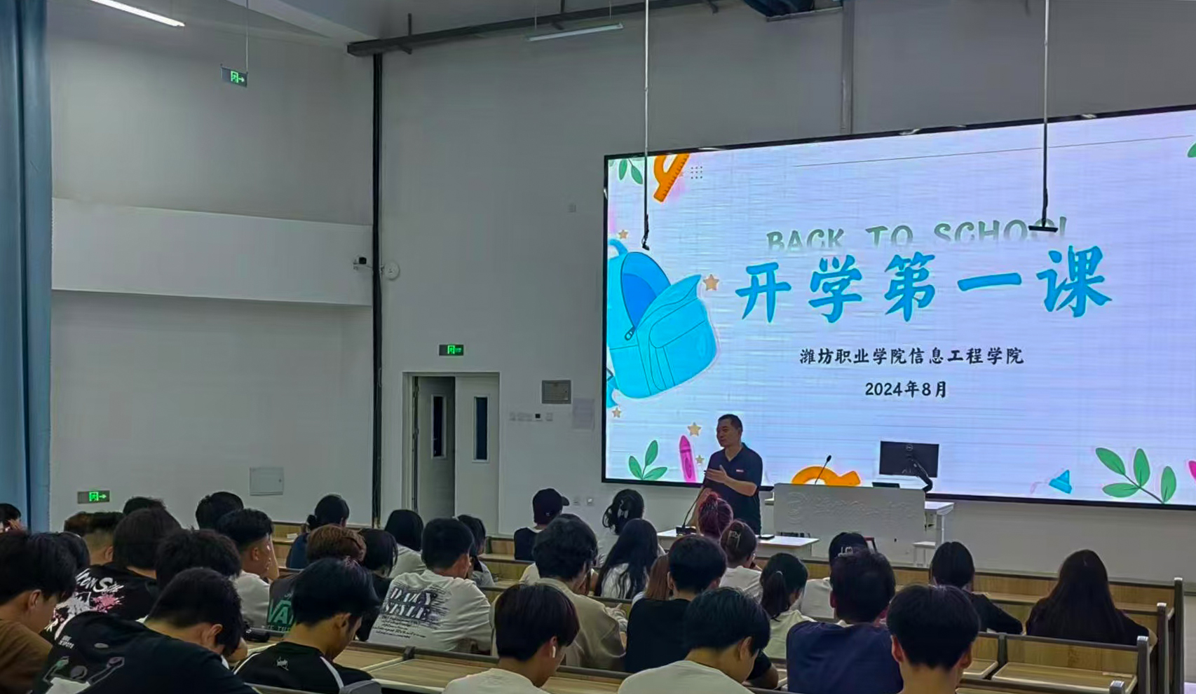2024年秋季新学期伊始,为全面贯彻落实党的二十届三中全会精神,做好新学期学生工作,8月25日晚,信息工程学院开展2023级学生“开学第一课”班会活动。 班会上,各班辅导员老师从“新学期新思想新征程”“学生课堂要求行为规范”“笔记本教室管理”“宿舍日常行为规范”“新学期安全教育”等方面,与同学们展开了深入的交流,引导同学们培养良好习惯,迈好新学期第一步。班会互动环节,同学们积极分享总结暑期三下乡及社会...更多 -