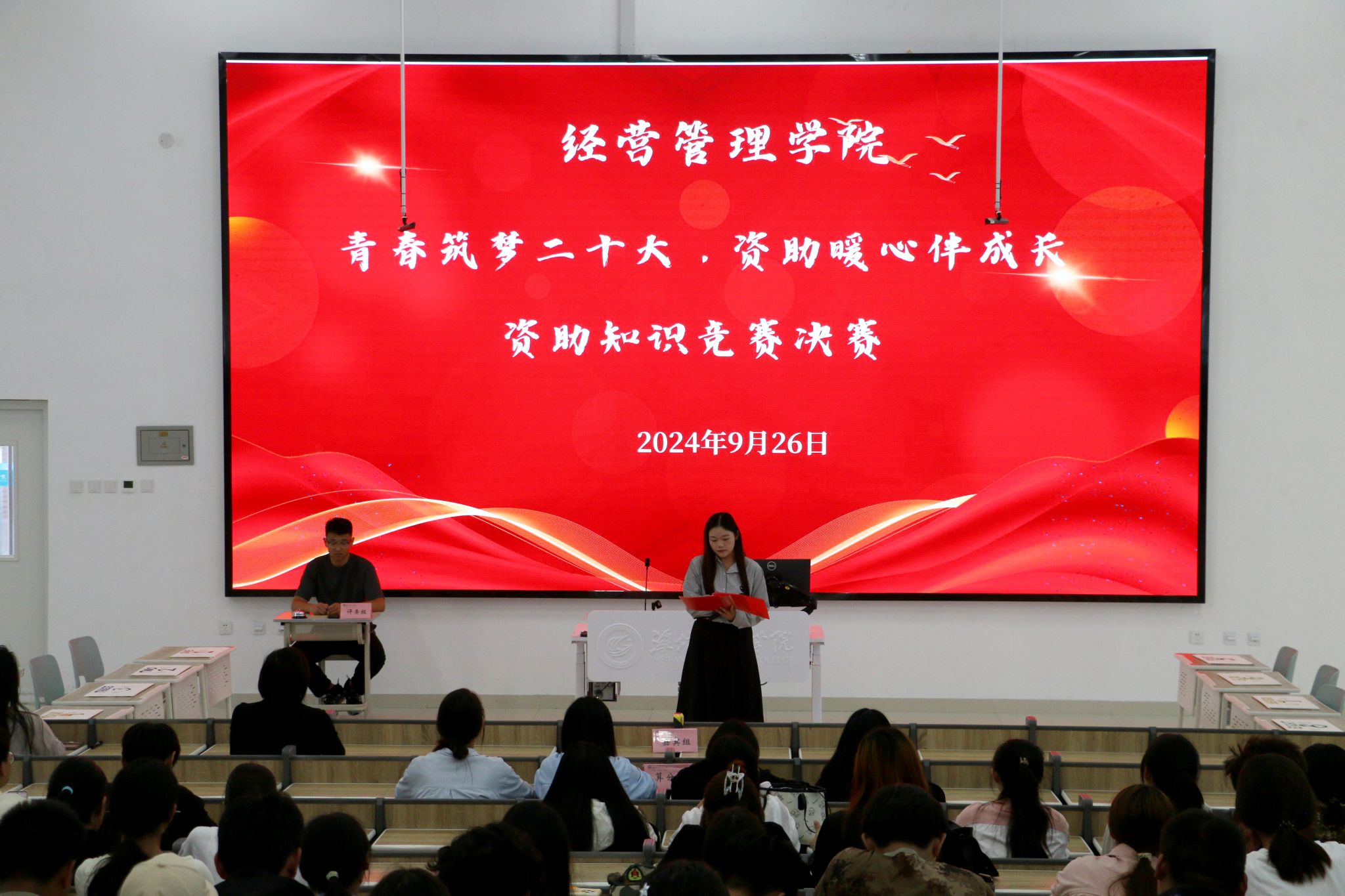 为进一步加大国家资助政策的宣传力度,提高资助育人实效,加深同学们对资助政策及学院资助体系的了解,9月26日下午,经营管理学院在智泽2号楼A117教室举办“青春筑梦二十大,资助暖心伴成长”资助知识竞赛活动。此次知识竞赛分为线上初赛和线下决赛两个阶段,经过激烈角逐,共有16名选手进入决赛。竞赛知识围绕学校“奖、助、贷、免、勤、补、减”并举的学生资助体系,分为抢答和必答两个环节。在必答题环节,同学们沉着冷静,对答如流,...更多 -
