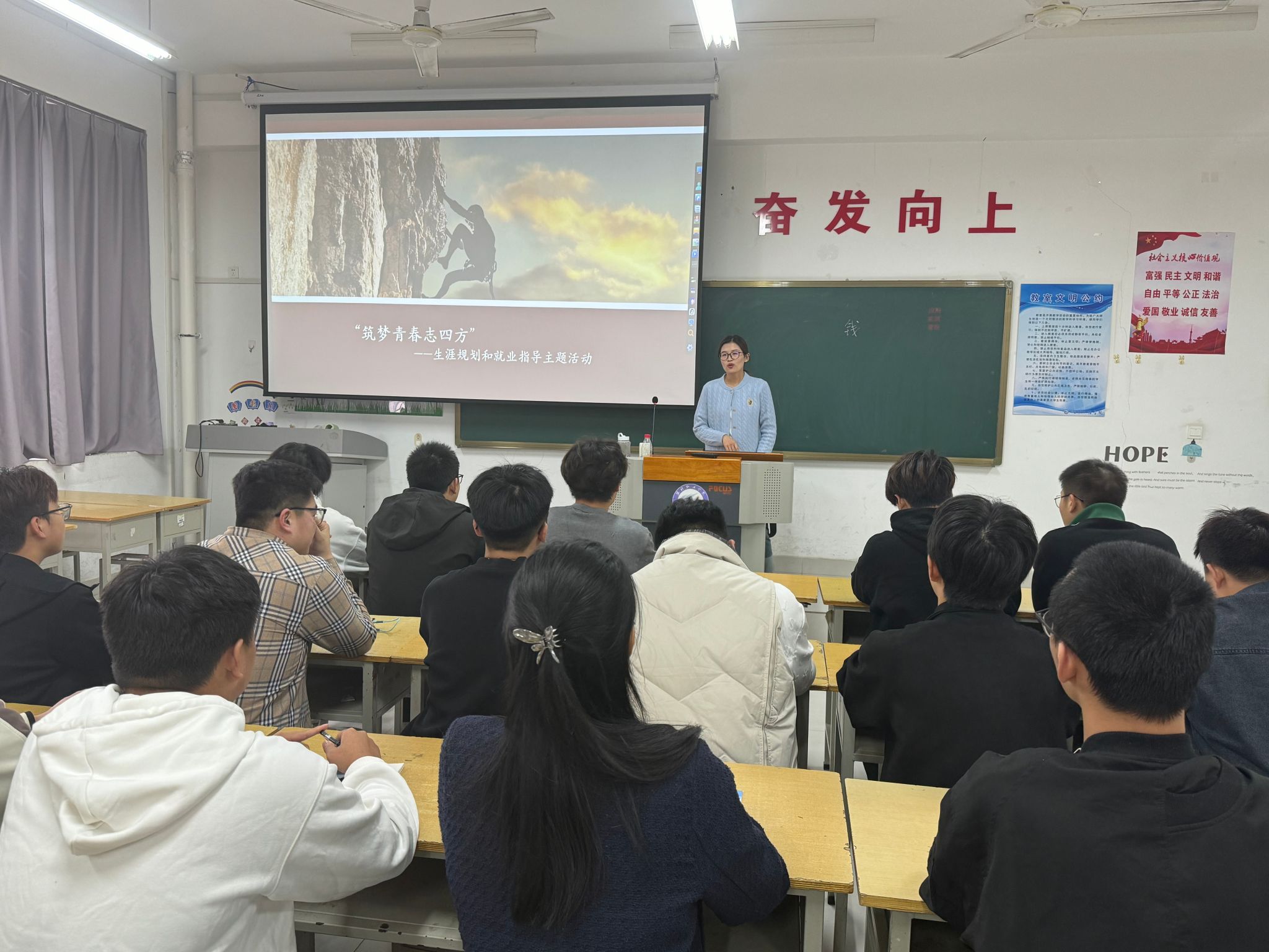 为进一步帮助学生全面认识自我,科学规划职业生涯,为未来的就业之路打下坚实的基础,10月31日,汽车工程学院开展”筑梦青春志四方“为主题的职生涯规划和就业指导主题活动。活动伊始,汽车工程学院就业工作负责老师为学生分析了当前社会的就业形势,指出在激烈的市场竞争中,合理规划职业生涯对于大学生未来发展的重要性。她强调职业规划应从自我认知开始,了解自己的兴趣、优势、价值观和职业目标,再结合市场需求和行业趋势,制定出切实可行的职业发展规划。...更多 -
