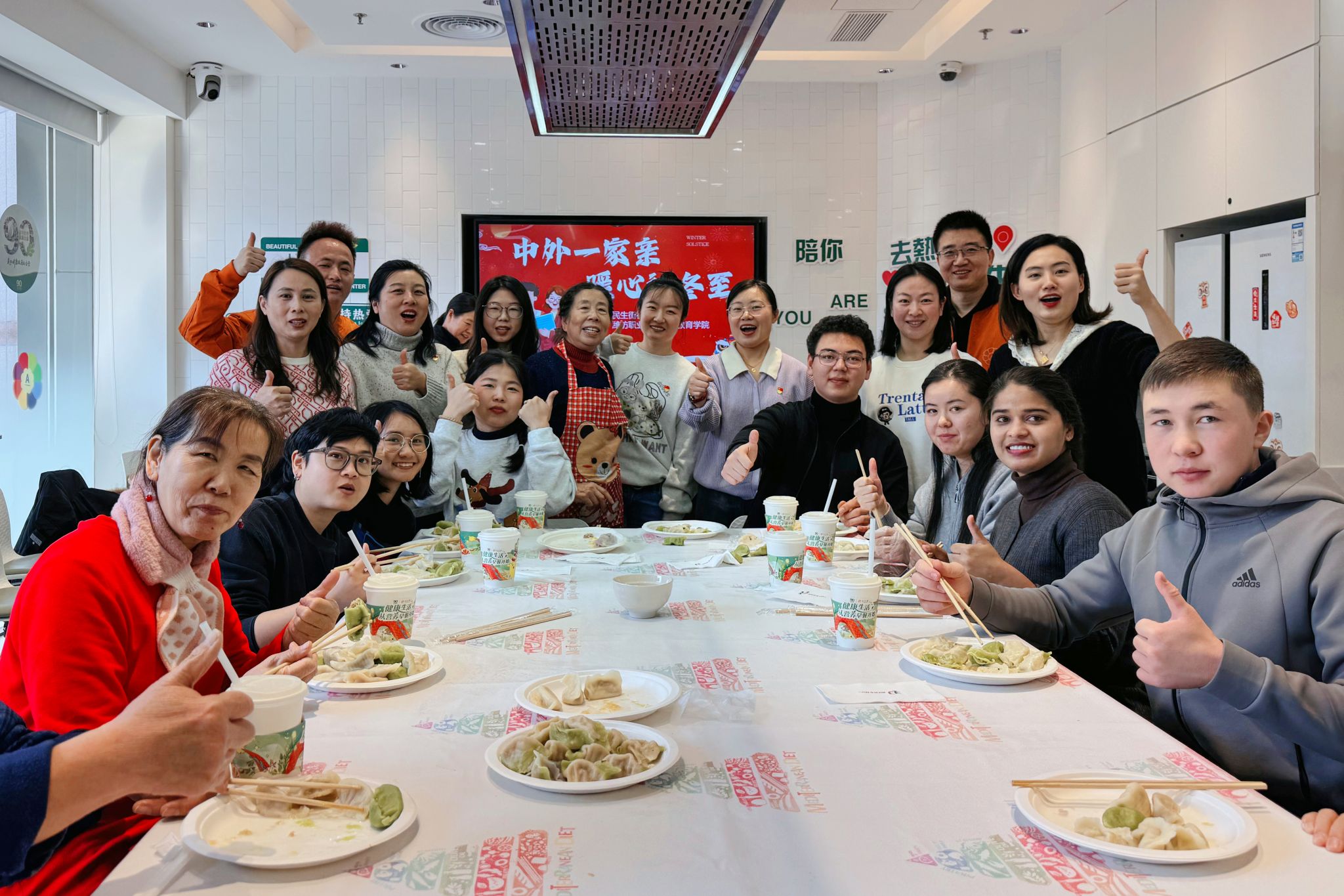 冬至将近食饺子,寒冬已至盼暖阳。12月20日上午,国际交流与合作处党支部的党员们到奎文区民生街社区开展“中外一家亲 暖心过冬至”志愿服务活动,来自泰国、巴基斯坦、吉尔吉斯斯坦等国家的留学生共同参与活动。活动中,党员们、社区工作人员及留学生们来到社区共享厨房一起包饺子。大家分工明确,有的准备馅料,有的揉搓面团,有的忙着擀皮,全身心投入到中国传统美食的制作当中。当饺子全部包好后,留学生们学习着煮饺子,随后,...更多 -