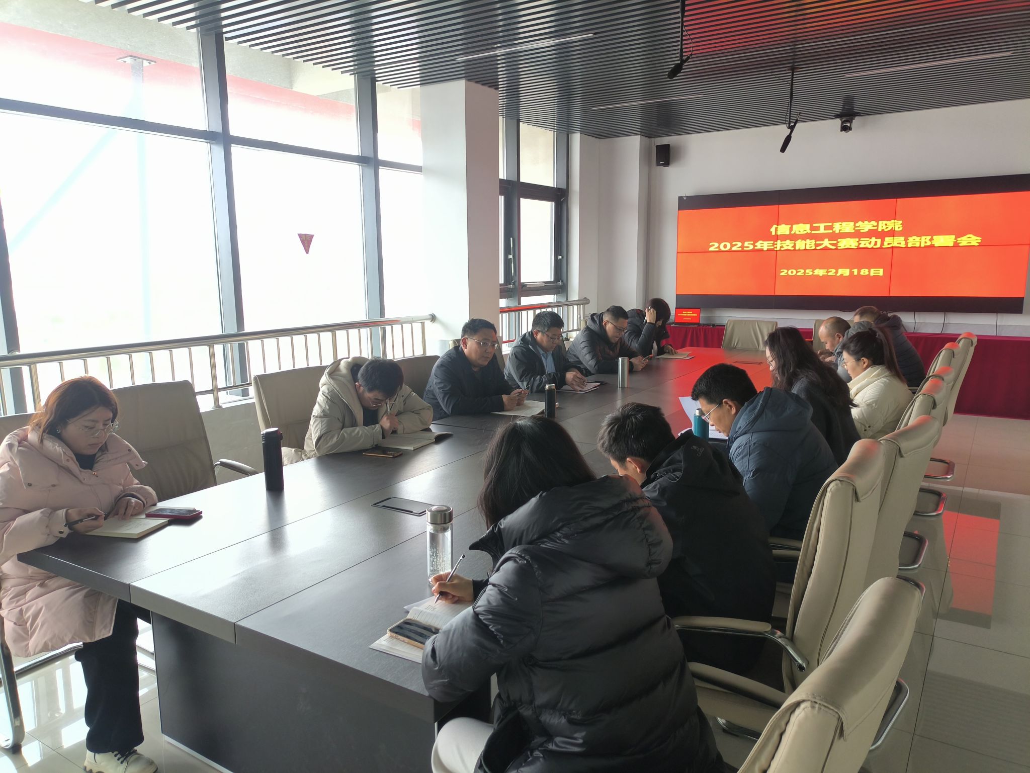 为促进技能大赛向新向好发展,全面推动“以赛促教、以赛促学、以赛促改”,信息工程学院于2月18日下午在智泽1号楼大学生活动中心召开2025年技能大赛动员部署会议。信息工程学院主要负责同志、分管教学负责同志及各赛项负责老师参加。会上,信息工程学院主要负责同志首先总结了2024年各类技能大赛取得的成绩,分析了存在的问题和不足;随后,各赛项负责老师结合2024年大赛工作中的问题和不足,从学生梯队、参赛目标、备赛计划、新赛制下备赛方向调整等方面进行了新学期工作计划汇报,...更多 -
