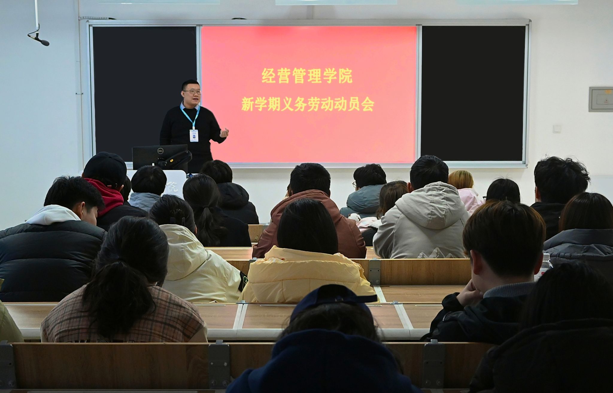 为贯彻落实劳动教育理念,引导学生树立正确劳动观念,增强社会责任感和集体凝聚力,推动学生德智体美劳全面发展,3月4日,经营管理学院在智泽2号楼B214阶梯教室召开新学期义务劳动动员会,辅导员老师以及在校班级劳动委员参加会议。会上,辅导员老师从劳动教育的意义、本学期义务劳动开展、劳动纪律、考核标准和评优办法五个方面对本学期义务劳动进行了详细解读,提醒同学们要高度重视,并在劳动中贡献自己的力量,在实践中成长、实现自我价值。...更多 -