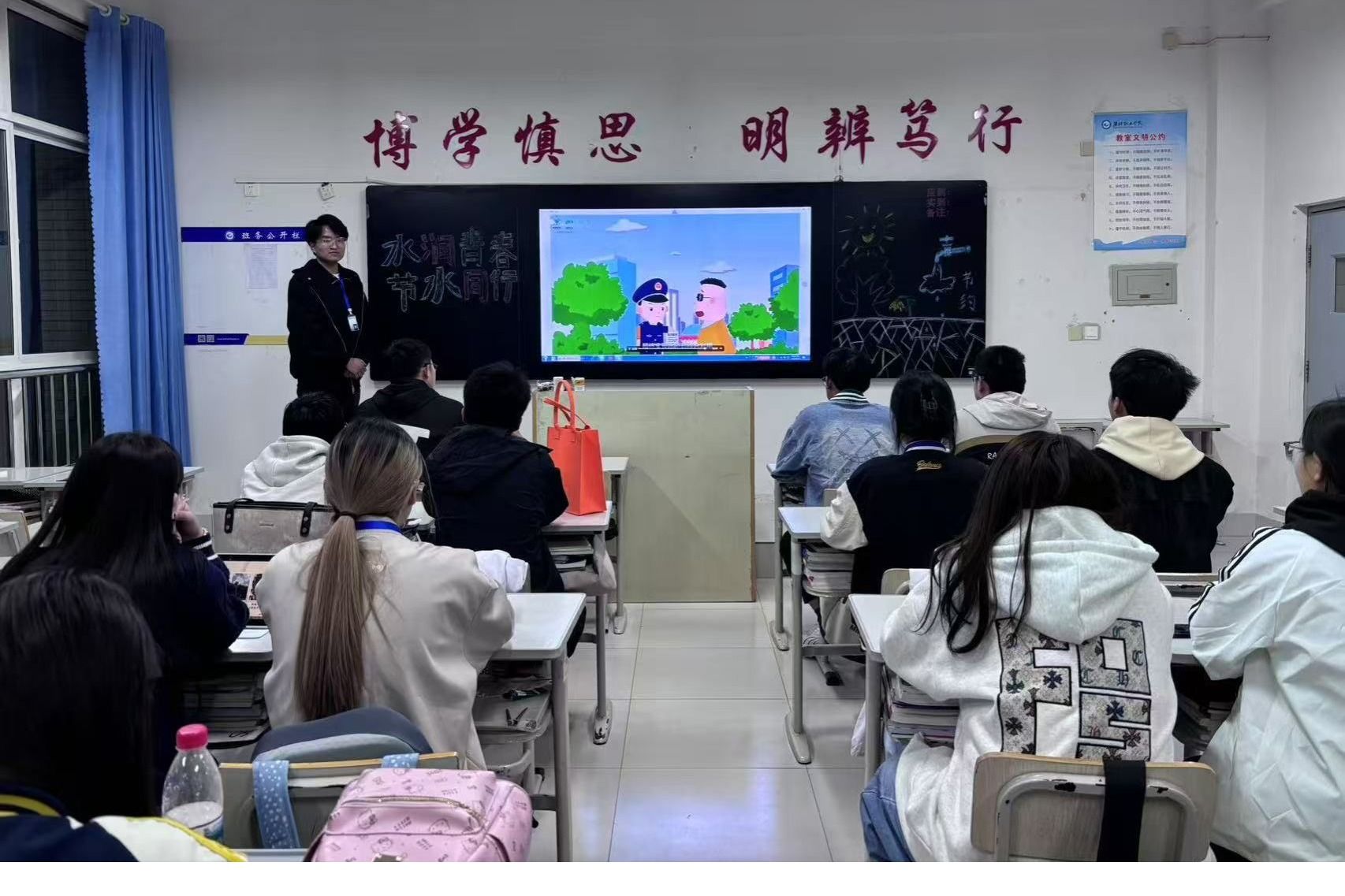 为增强学生节水护水意识,培养新时代青年的环保责任感,保障国家水安全,食品药品学院于3月18日到3月28日组织开展一系列节水宣传活动。活动期间,学院采取多元教育形式提升实效。组织全体师生通过“山东水利”公众号观看《法润水利 守护碧波》等专题宣传片,运用线上签到与线下研讨结合的模式实现1200余人次覆盖。各班级通过案例分析、节水知识竞赛等形式系统学习《山东省节约用水条例》,累计开展主题班会20场。由师生组成的50人节水志愿队深入食堂、...更多 -