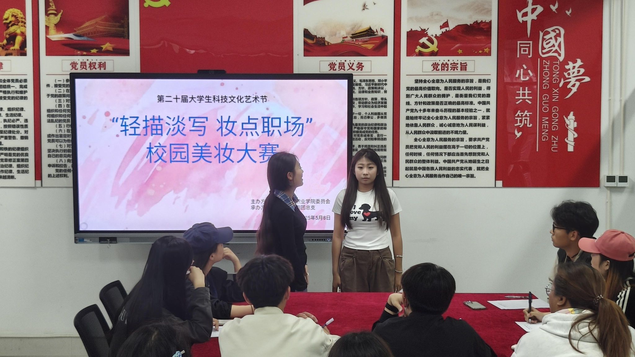 为提升同学们的职场形象意识与审美素养,鼓励大家探索美、创造美,以更自信、专业的姿态迎接未来的职场挑战,5月8日,由学院团委主办、尚行社区承办的第二十届科技文化艺术节之“轻描淡写 妆点职场”校园美妆大赛在社区活动中心举办。本次大赛吸引了40余名学生参加。比赛分为职业组和创意组两部分,分别考查选手们在职场形象塑造和创意设计方面的能力。参赛模特均为素颜状态,现场由选手们亲自设计妆容。选手们全神贯注,运用自己的专业知识和创意灵感,...更多 -