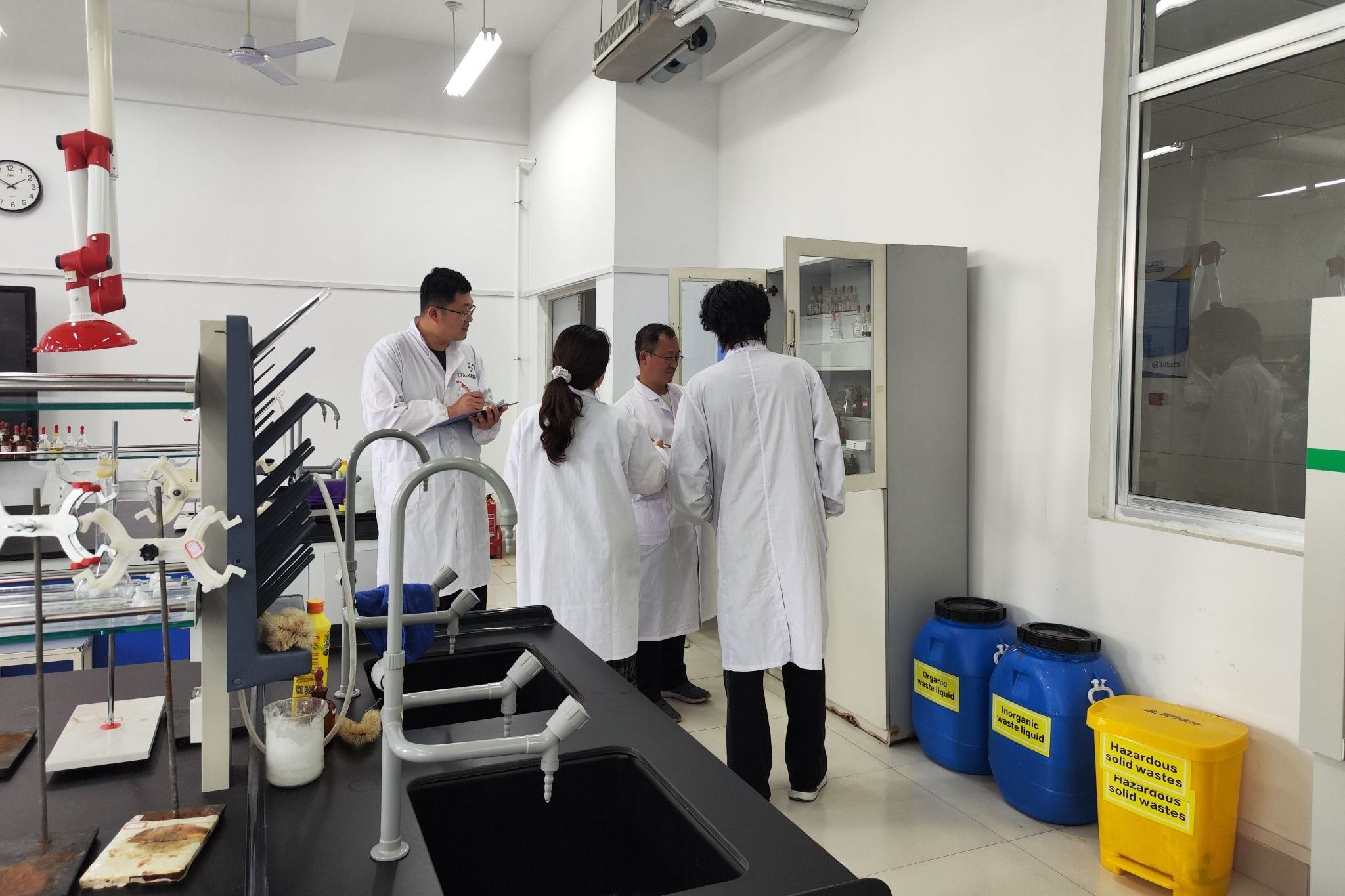为进一步加强实训室危化品安全管理,消除安全隐患,保障校园安全和稳定,5月15日—16日,化学工程学院开展实训室危化品专项检查工作,成立了由部门负责人、各教研室主任、安全管理人员及相关教师组成的检查小组。检查小组从药品库、危废库的通风、防火、防爆设施运行情况,危化品存放条件,标识、标签是否合规,线上线下入库台账、库存量是否合理等方面进行了重点排查;随后,检查人员对各实训室危化品的储存、使用、管理情况进行了全面细致的检查,...更多 -