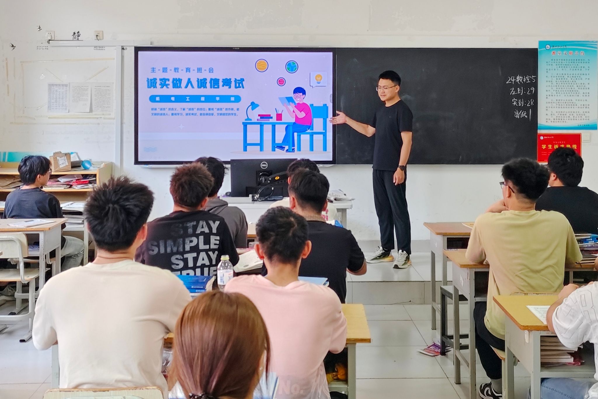 为进一步加强学风建设,营造风清气正、公平公正的考试环境,机电工程学院于6月24日组织各班陆续开展 “诚信考试” 主题班会。班会现场,辅导员化身诚信教育的“引路人”,以严谨细致的态度,围绕《学生考试管理办法》展开深度解读。他们从考试入场规则、答题规范,到作弊行为的界定与处理规定,逐一剖析,条分缕析。同时,结合真实违纪案例,剖析违规对学业、就业的严重影响,强化学生纪律意识。班会采用多样化的教育形式。通过播放诚信考试宣传片,...更多 -