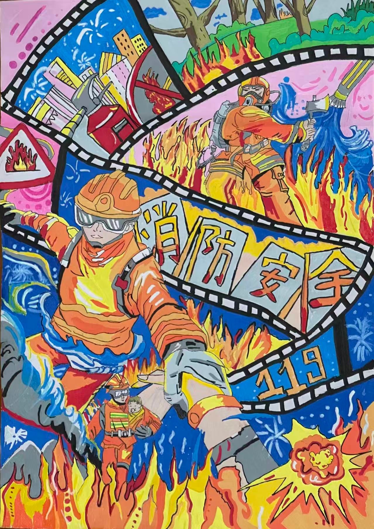 食品药品学院绿竹社区开展 “画笔守安全·消防驻人心”绘画大赛活动