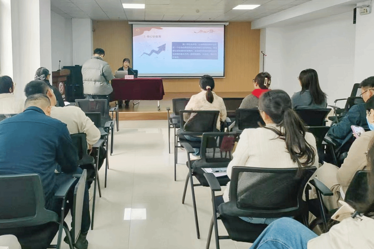 为进一步弘扬社会主义核心价值观,夯实社区精神文明建设根基,提升居民文明道德素养与社区治理效能,10月30日上午,马克思主义学院教师葛桂芹应邀走进潍坊市滨海区央子街道,以《培育和践行社会主义核心价值观》为题开展专题宣讲。辖区50余名街道干部、社区工作者及居民代表齐聚一堂,认真聆听学习。宣讲中,葛桂芹紧扣主题,从社会主义核心价值观的基本内容、重要意义和践行路径三个方面展开讲解。她巧妙融合中华优秀传统文化中的道德理念,...更多 -