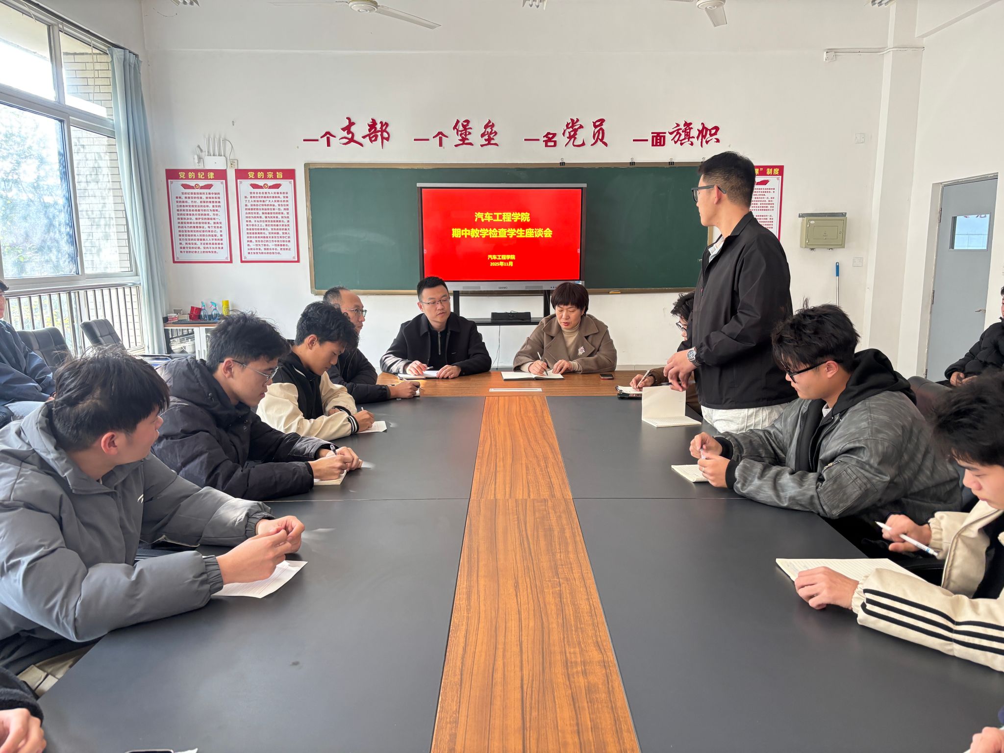 为进一步推进教风学风建设,精准倾听学生心声,高效回应学生诉求,11月11日下午,汽车工程学院组织召开期中教学检查学生座谈会。全院28个班级学生代表参会建言,教学管理办公室及辅导员办公室相关负责人出席会议。座谈交流中,学生代表围绕学习环境、课堂秩序、住宿服务、实习实训及教风学风等议题畅所欲言,重点就学风建设的具体路径、教学设备仪器的高效利用、实习实训课程的优化开设等共性关切问题,提出了针对性的意见与建议。针对学生代表反映的问题,...更多 -