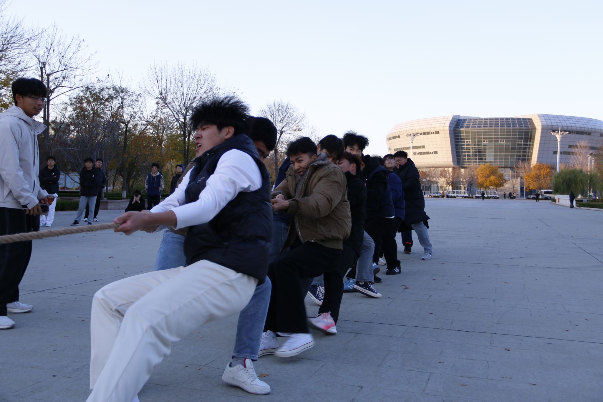 为丰富校园文化生活,增强班级凝聚力,培养学生团结协作与拼搏奋斗的精神,11月15日,汽车工程学院举办了“‘绳’采飞扬,凝心聚力”拔河比赛。2025级各班级学生踊跃参与,组成了10余支代表队,展开了一场力量与意志的精彩较量。比赛伊始,参赛队伍便早早来到场地,进行战术布置与热身准备。随着裁判员一声清脆的哨响,粗壮的麻绳瞬间绷紧,呐喊声、助威声、口号声此起彼伏,汇聚成一片激情的海洋。参赛队员们紧握长绳,扎稳马步,身体后倾,...更多 -