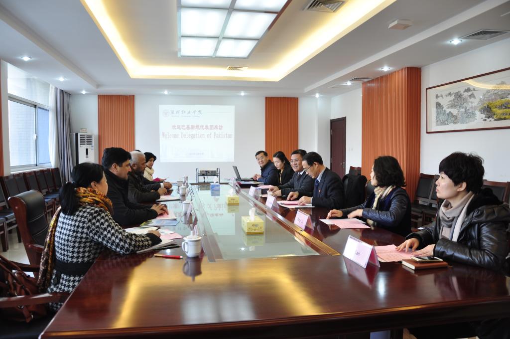 赵君堂主持座谈会。王家爱致词,对巴基斯坦代表团的来访表示热烈欢迎,全面介绍了潍坊市的历史、文化、教育等发展情况,以及学院的办学规模、专业设置、人才培养及国际交流与合作等情况,并提出“一带一路”建设及中巴经济走廊建设为两国互联互通、共同发展提供了契机,中巴经济合作项目建设需要更多会汉语懂技术的技能型人才,这将为两国开展教育交流与合作提供更大机遇。随后观看了MG冰球突破官网宣传片。巴基斯坦代表团的各位校长对学院的热情接待表示感谢,介绍了巴方学院的办学情况,并就与MG冰球突破官网合作开展汉语培训和职业技能培训具体合作事宜进行了洽谈交流,在共建汉语培训中心、留学生教育、师生交流等方面达成了共识并签署了合作协议。
