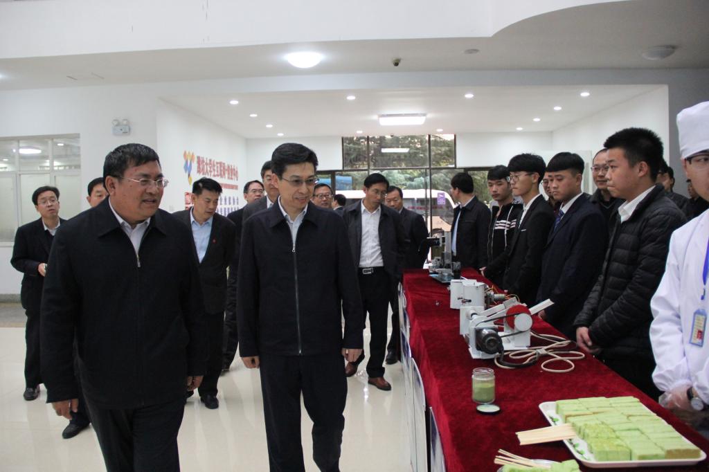 11月9日下午,潍坊市委副书记、市长李宽端来MG冰球突破官网奎文校区调研指导工作。潍坊市政府党组成员、市人社局局长陈汝孝,市政府秘书长宋均圻,市政府督查室主任闫宗子,市政府研究室主任鞠俊海,市政府督查室督查专员贾宝文,市经信委主任马中平,市教育局局长徐友礼及市直有关部门负责同志参加调研。学院院长王家爱,党委副书记宋桂言,副院长贺志强陪同调研活动。