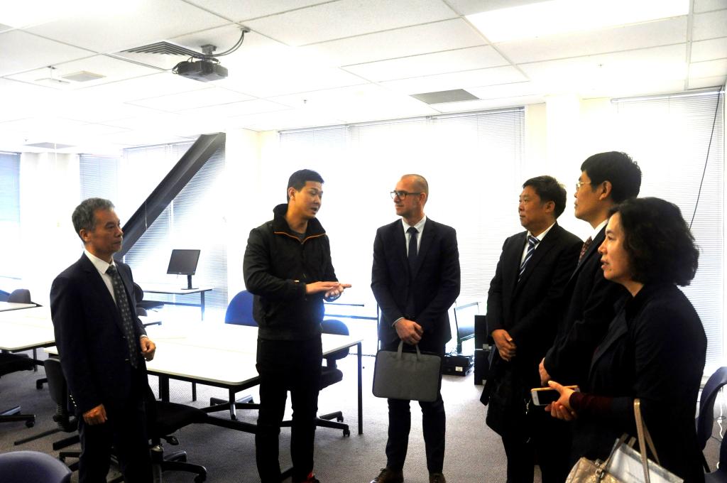 在澳大利亚新南威尔士州TAFE学院,在澳大利亚教育交流与培训协会Phoebe Chen理事陪同下会见了北岸TAFE学院Kingscliff校长,北岸TAFF学院国际总监Andrea Alois。访问团现场考察了学校的艺术设计实训室、学前教育与培训中心、IT教学中心、图书室、学生学习中心、汽车维修车间等。澳方详细介绍了澳大利亚TAFE职业教育体系、TAFE学院的专业设置、教学模式、考试评价、职业认证、服务社区等基本情况,双方就建立中澳学院、推进中澳合作办学项目、师资培训、学生交流等事宜进行了交流,并达成了深入合作的共识。