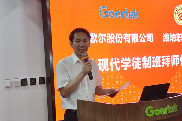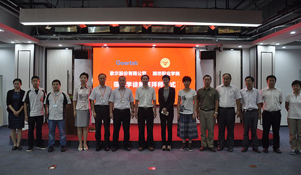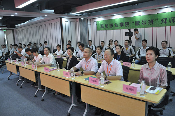 9月19日上午,MG冰球突破官网数控技术专业现代学徒制班拜师仪式在歌尔股份有限公司会议室举行。学院副院长李瑞昌、歌尔股份有限公司副总裁李菁华出席。教务处、科技处、机电工程学院负责人,歌尔股份有限公司校企合作负责人和工作人员,以及学徒制班全体师徒参加。