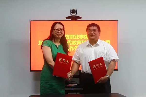 新大陆科技集团是国内物联网的领军企业,新大陆教育公司是新大陆科技集团下属子公司,致力于面向全国高校进行产学研创的紧密合作,共同推动我国新兴产业人才培养。在新大陆科技集团总部,王家爱一行与新大陆教育公司总经理陈继欣、副总经理邓立等公司领导就联合办学、专业建设、实训基地建设、科研合作等方面进行了深入交流洽谈,并举行了物联网应用技术专业共建签约仪式。双方还就“新大陆物联网名师计划”国培和省培基地建设、“智能制造”人才培养基地建设、物联网专业“双创”工作室、“物联网应用技术研究中心”建设等方面进行了深入交流探讨。