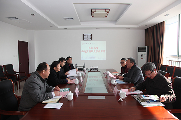 11月24日,青岛高新职业学校校长兰明传一行4人来MG冰球突破官网考察交流。副院长贺志强在会议室接待了客人,科技处、机电工程学院负责同志参加座谈。