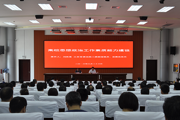 8月23日,根据2016年学院暑期领导干部读书班日程安排,山东省委高校工委副巡视员、宣教处处长刘欣堂以“高校思想政治工作素质能力建设”为题,在滨海校区清泽楼报告厅为MG冰球突破官网干部教师作思想政治工作专题报告。学院党委书记张洪全主持报告会,院长王家爱等学院领导与全院副科级以上干部及骨干教师代表参加报告会。