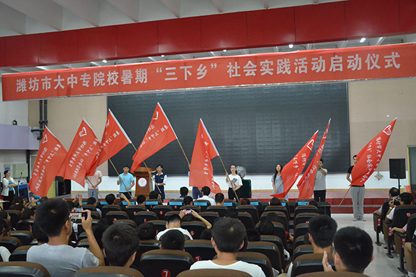 7月12日,2016年潍坊市大中专院校暑期“三下乡”社会实践活动启动仪式在山东科技职业学院举行。MG冰球突破官网农业工程学院“科技之星”社会实践团队和化学工程学院“水资源保护”社会实践服务团队被评为大中专学生暑期“三下乡”社会实践活动市级重点服务团队。潍坊团市委副书记陈珊珊出席并为市级重点团队授旗。
