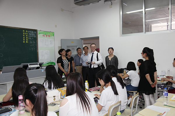 座谈会上,王家爱对客人的来访表示欢迎,介绍了潍坊的文化特色,学院办学历史、校区建设、专业设置、人才培养、师资队伍及国际交流与合作等方面的情况,并祝双方合作举办学前教育专业项目顺利推进。PhoebeChen介绍了澳大利亚职业教育教育体系、教师职业资格培训等情况。Andrew·Palmer介绍了戈顿技术与继续教育学院的地理位置、学院的管理机构、专业设置及人才培养等方面的情况。双方就推进合作项目进行了交流洽谈,并签署了教师培训协议。随后赵君堂陪同客人参观了校园,以及文化创意学院学前教育专业教学及实训室,并与师生进行了交流。
