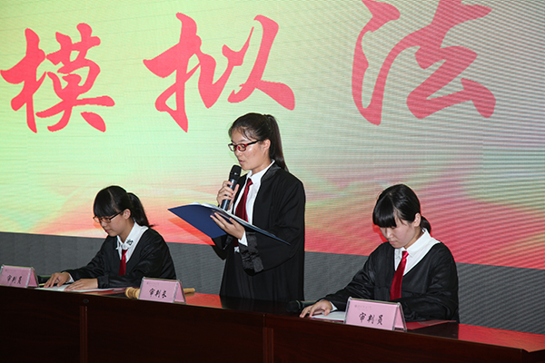举办大学生模拟法庭,旨在认真贯彻落实党的十八大、十八届三中、四中、五中全会精神,弘扬“依法治国,建设社会主义法治国家”理念,创新大学生法制教育形式,提升法制教育质量,培养具有学法、用法、守法意识的优秀大学生。本期大学生模拟法庭,参加活动的同学热情高涨,产生了很好的普法效果,在师生中产生良好反响。作为当代大学生应当积极学习法律知识,控好自己情绪,保持阳光心态,牢记法律底线,从药家鑫案中接受教育、吸取教训,养成“学法、用法、守法”的良好习惯,争做德智体美全面发展的合格大学生。(臧学运 孔令香 杨富强供稿)