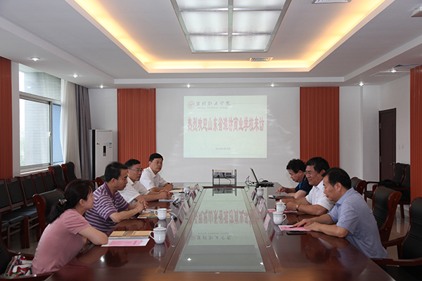 6月20日,山东省潍坊商业学校校长孙中升一行4人来MG冰球突破官网考察交流。院长王家爱、副院长贺志强在会议室会见客人,招生就业处负责同志参加座谈。