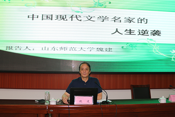 “人文大讲堂”揭牌仪式后,在清泽楼报告厅举行了首场报告会。报告会由学院党委副书记宋桂言主持,山东师范大学博士生导师、国家级人才称号教师魏建教授应邀为师生作了“中国现代文学名家的人生逆袭”的精彩报告。本场报告既是一场高水平的中国现代文学学术报告,又是一场倡导立德树人、倡导逆袭成功的德育报告,得到与会师生高度评价。