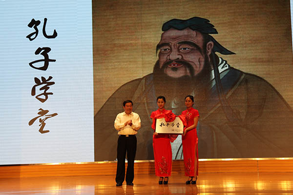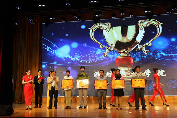 院长王家爱为2016年山东高校十大优秀大学生韩子琨颁奖,党委副书记宋桂言为“孔子学堂”揭牌,副院长贺志强和纪委书记李瑞昌为学团活动获奖部门与个人颁奖。