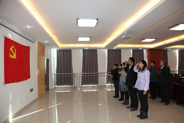 1月12日,按照学院党委安排,学院教职工新发展党员宣誓仪式在滨海校区清泽楼会议室举行。组织人事处负责同志带领新党员面向党旗,庄严宣誓。部分党支部书记和组织人事处相关人员一起见证这一庄严时刻。