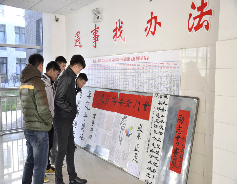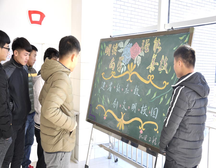 近日,滨海校区惠泽楼大厅“我为名校添光彩”、“迎评促建,爱我校园”、“勤俭节约,从我做起”、“奋斗青春筑梦想”……一幅幅充满真情实感、富有时代气息和传统文化色彩的主题板报,吸引了广大师生纷纷驻足观看。