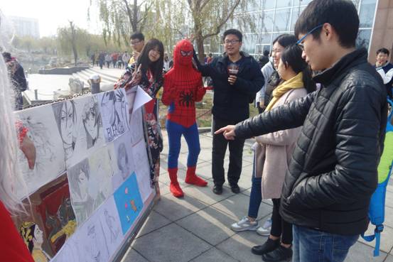 本次漫展由师范/文化创意学院同学手绘,作品展现了深受同学们喜爱的龙猫等动漫60余幅,精美的线条、唯美的画面,引来广大师生纷纷驻足观看。期间,为了进一步营造漫展浓厚氛围,社团成员现场穿着cosplay服装,将漫画中的“蜘蛛侠”等系列动漫形象搬到校园中来,演绎了一场精彩的cosplay真人秀,引得同学们纷纷与自己喜爱的动漫形象合影留念。