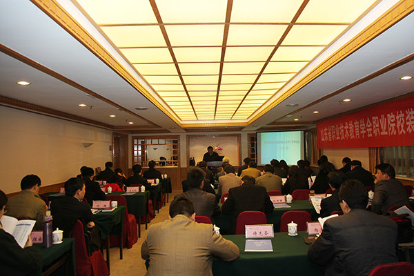 11月14日,由MG冰球突破官网和山东省轻工工程学校共同承办的山东省职业技术教育学会职业院校装备与校企合作工作经验交流会,在潍坊富华国际会议中心举行。学院院长王家爱出席会议并致辞。山东省职教学会副会长、秘书长姜玉亭,省职教学会副会长王世忠,省职教学会副会长、省轻工工程学校校长迟本理等领导出席会议。学院副院长贺志强主持交流会。来自全省31所职业院校、8家企业的77名委员代表参加了会议。
